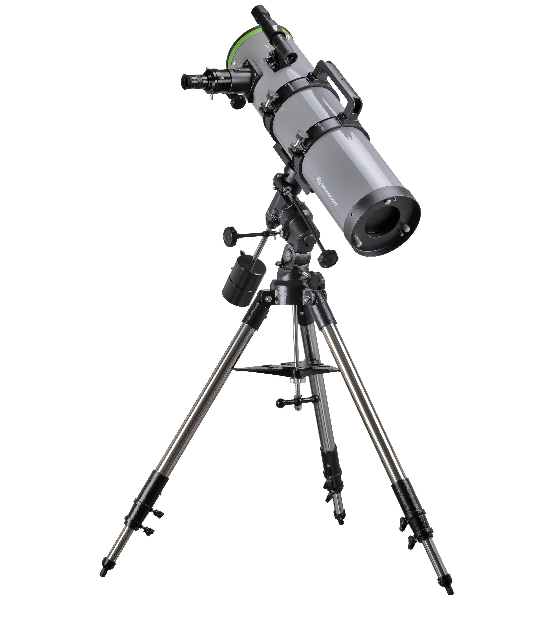 Negalite laukti, kol išeisite iš namų ir pamatysite Oriono ūką ar Sietyną? Su šiuo teleskopu galite ieškoti tobulos stebėjimo vietos: dėl trumpo židinio nuotolio vamzdis yra trumpas ir jį lengva transportuoti. Be to, aukščiausios kokybės ekvatorinė montuotė leidžia net pradedantiesiems greitai surinkti teleskopą. Stebėti taip pat labai paprasta – galite rankiniu būdu kompensuoti žemės judėjimą, kad jūsų stebimi objektai liktų regėjimo lauke. Siekiant užtikrinti maksimalų žiūrėjimo komfortą, šio Niutono reflektoriaus teleskopo fokusatorius yra pritvirtintas prie vamzdžio šono. Aliuminio trikojis yra reguliuojamo aukščio ir turi priedų lentynėlę, kad visa svarbi įranga būtų lengvai pasiekiama ranka. Ieškiklis su raudonu tašku leidžia sulygiuoti teleskopą su objektais naktiniame danguje. Raudonas taškas rodo padėtį, į kurią nukreiptas jūsų teleskopas. Jei norite užfiksuoti naktinių atradimų vaizdus, galite prijungti išmanųjį telefoną prie teleskopo naudodami išmaniojo telefono adapterį.