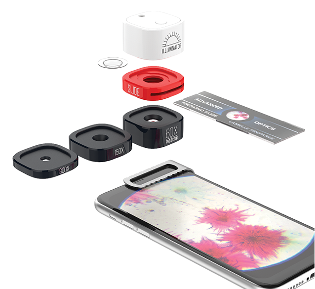 Naudodami mikroskopą, jie gali peržiūrėti bet kuri iš dviejų pridėtų paruoštų bandinių arba naudoti rinkinio medžiagas savo bandiniams gaminti. Pridedama dešimt tuščių objektyvinių stiklelių, du mėgintuvėliai, plastikinis puodelis, pincetas ir pipetė. Jei jums reikia daugiau preparatų, laikiklis priima bet kokį 75 x 25 mm objektyvinį stiklelį. Viskas yra patogiai magnetiška ir suderinama su beveik bet kokiu telefonu. Tiesiog uždėkite spaustuką ant kameros, pritvirtinkite objektyvą, tada užfiksuokite prepaato laikiklį ir LED apšvietimą.