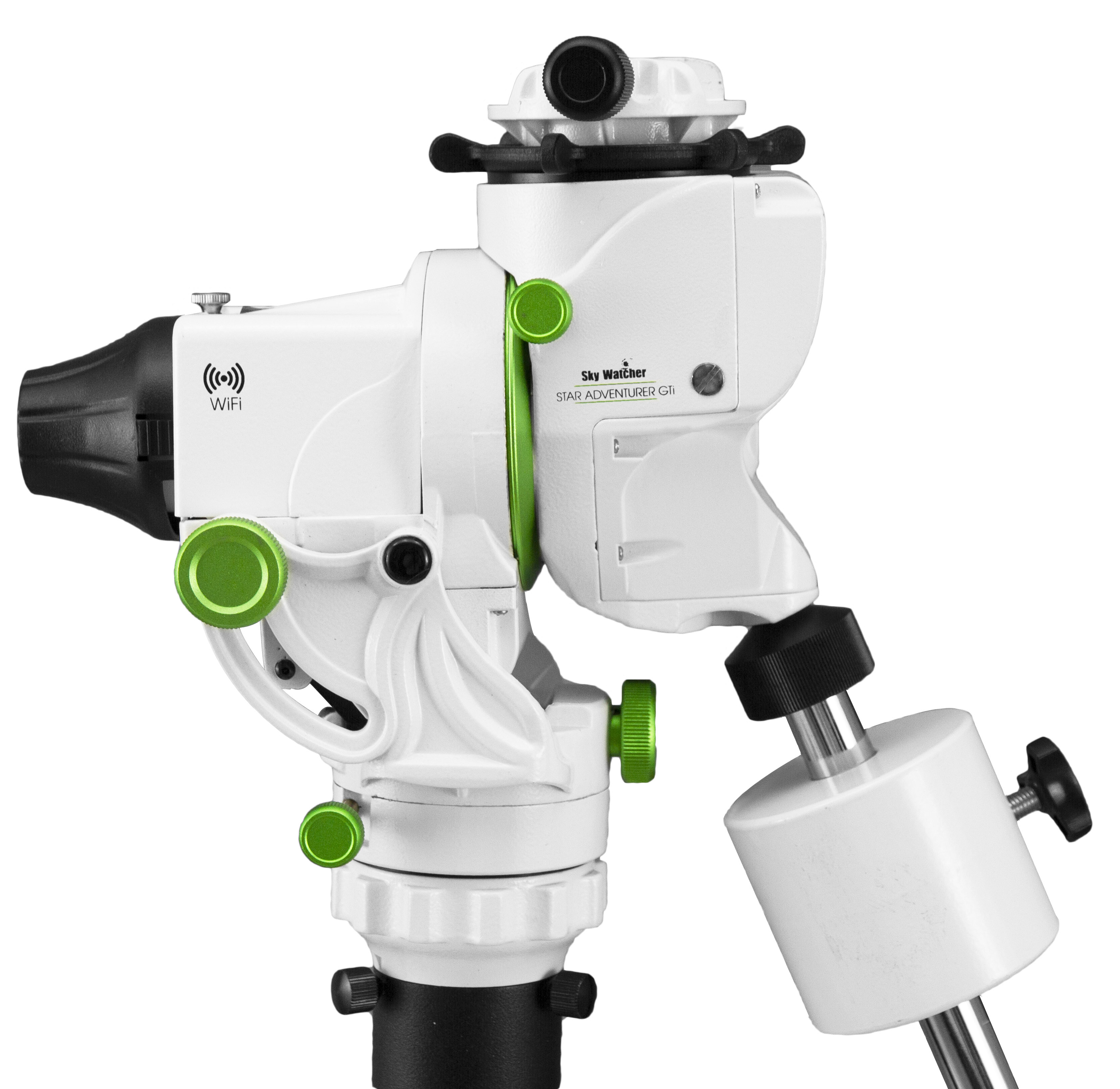 Įspūdingoje naujojoje Star Adventurer GTi yra įmontuotas apšviestas poliariskopas, skirtas preciziškam išlygiavimui, USB sąsajos, automatinis gidas, pasirenkamas SynScan rankinis valdiklis ir SNAP užrakto valdymas jūsų DSLR (programuojamas per Sky-Watcher nemokamą SynScan Pro programėlę, skirtą iOS ir Android). Star Adventurer GTi taip pat turi dviejų padėčių atsvarą, skirtą naudoti žemose platumose, taip pat visišką išmaniojo telefono valdymą per Wi-Fi.