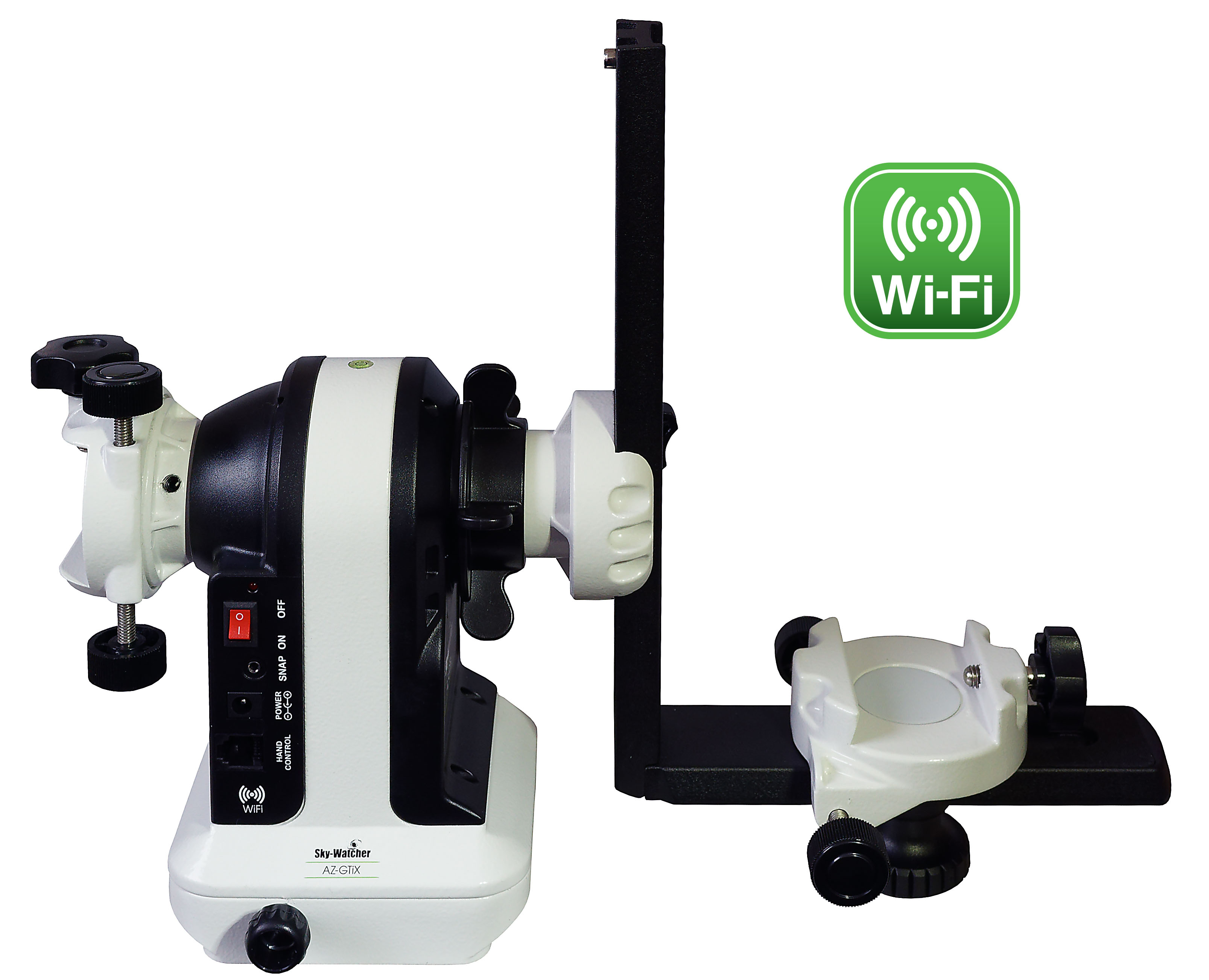 Įspūdinga nauja lengva ir labai mobili Sky-Watcher AZ-GTiX dviejų tvirtinimo juostų Alt-azimutinė montuotė su integruotu Wi-Fi moduliu buvo sukurta naudoti su iki dviejų teleskopų ir yra valdoma belaidžiu būdu išmaniuoju telefonu arba planšetiniu kompiuteriu, naudojant nemokamą SynScan programėlę, skirtą iOS ar Android.