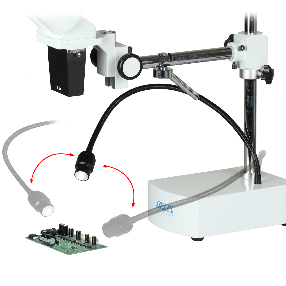 Stereomikroskopas Discovery turi labai didelį darbinį atstumą (250 mm), su stabilia montuote. Keičiant okuliarus ir obejktyvus išgaunamas įvairus didinimas - 5x , 10x ir 20x su stebimu apžvalgos lauku 10, 18, 20, 36 mm. Lankstus LED apšvietimas. Tvirtas kietas padas neužima daug vietos ant stalo, bet tuo pat metu užtikrina didelį mikroskopo stabilumą.