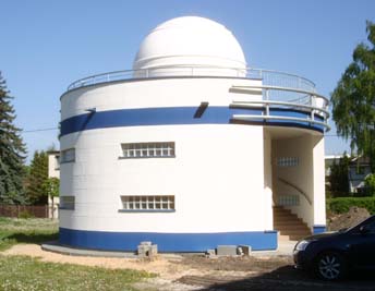 Astronomical domeThe dome is made from polyester–glass laminate of up to 6 mm thickness, providing full resistance to weather conditions, and ensuring high durability and aesthetics at the same time. In addition, it is reinforced by special convex profiles on the outside of the mazer and reinforcements placed inside the structure. The dome is made up of 8 basic elements – it strongly facilitates transport and the assembly on the high buildings. The tightness of the dome is guaranteed by its special construction which also prevents the leaking of water inside. The large gap at the base and the bright color covering prevent over-heating. Large window of one meter width the edge of sphere allows freely observations using telescopes of up to 120cm diameter. Observation window is designed so that the telescope had clear view of the zenith. Rotation of the dome is provided by a base placed track, it rolls thanks to 16 plastic rollers system. Driving system of the dome is made of two silent low power engines supplied from the 230V. One controls the dome`s rotation, the second allows you to open and close observation window. Special encoder mounted on a circuit of the dome cooperates with the dedicated driver which constantly measures the location of the dome and adjusts the engines` work respectively to the position of the telecope. Basic Data: