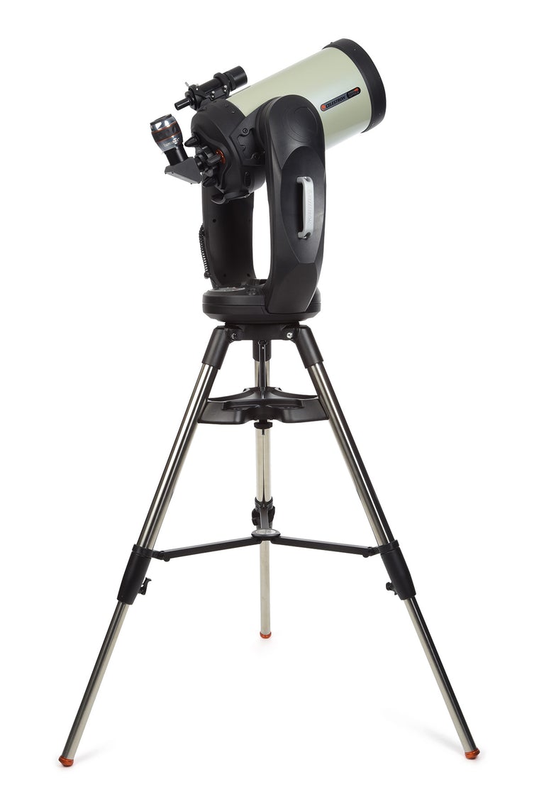 Optical tube is 9.25`` in aperture (2350mm focal length f/10). The 9.25`` aperture gathers 33% more light than an 8`` scope, providing brighter images of faint deep space objects. Its longer primary focal length and lower magnification secondary mirror produce a flatter field of view at the focal plane. This helps to reduce optical aberrations during photography and when using wide field long focal length 2`` eyepieces. Aluminum tube construction. The optics are hand-figured ? a complex optical procedure to perfect the performance that?s done on a commercial basis only by Celestron. StarBright XLT package includes high reflectivity multilayer aluminum mirrors enhanced with titanium dioxide for high reflectivity, plus a unique combination of magnesium fluoride and hafnium dioxide antireflection coatings on both sides of the Schmidt corrector lens. Starbright XLT multicoatings give you higher light transmission for brighter deep space images and shorter exposure times during CCD and 35mm photography. They also visibly increase the contrast on subtle lunar, planetary, and nebula details when compared with a scope with standard coatings or multicoatings. Across the total visual/photographic spectrum from 400nm to 750nm, tests show the new Starbright XLT coatings are 16% brighter overall than even the original industry-standard Starbright multicoatings. Focuser is smooth with minimum image shift due to use of pre-loaded ball-bearings rather then bushings. Removable 1.25`` visual back holds visual and photographic accessories such as a star diagonal, tele-extender, off-axis guider, etc. Supplied with 8x50 achromat focuser, and 40mm quality Plosll eyepiece (59x).