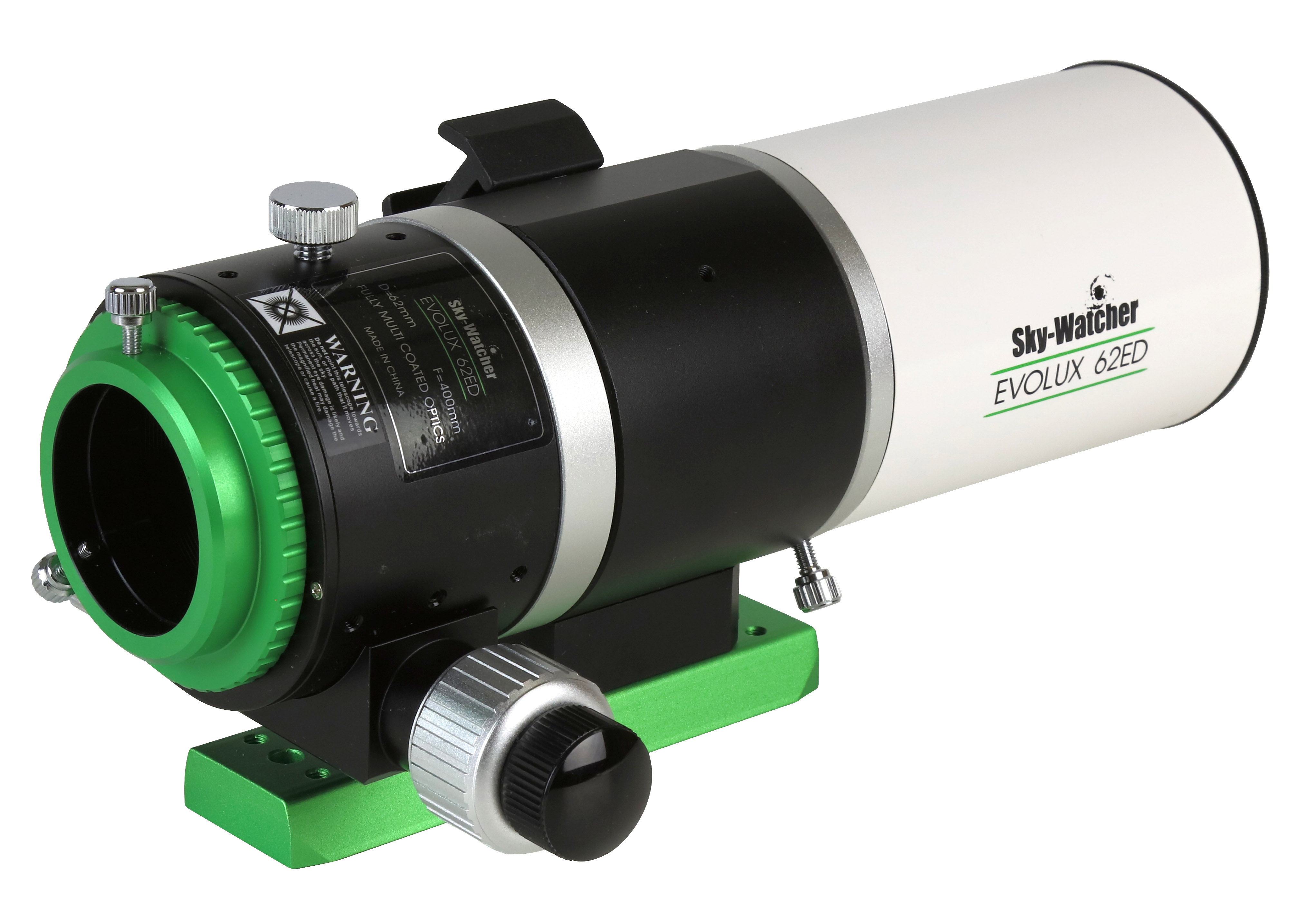 Evolux ED models have key upgrades in the optics and the mechanics, making them the perfect fit for a widefield grab-and-go setup. Evolux ED apochromatic doublet refractors are the perfect blend of superior extra-low dispersion glass and affordability. The doublet lens assembly utilises a proprietary combination of optically matched lenses, including one ED lens element, that delivers sharp stars with charcoal-black, contrast-rich skies, whilst virtually eliminating false colour. All lens elements feature Sky-Watcher`s proprietary Metallic High-Transmission Coatings (MHTC) which are the finest photon anti-rejection coatings in their class, optimising light throughput to up to 99.5%! The Evolux-62ED can also be used as a deluxe guidescope.