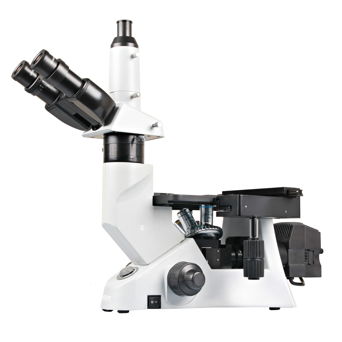 Delta Optical IM-100 inverted metallographic microscope for observing opaque samples in reflected light (EPI - reflected light) in bright field and polarized light at a magnification in the range of 40x-400x (with optional lenses up to 1000x ). Thanks to the inverted design, it is possible to observe larger samples that do not fit under other microscopes (due to the height of the sample).