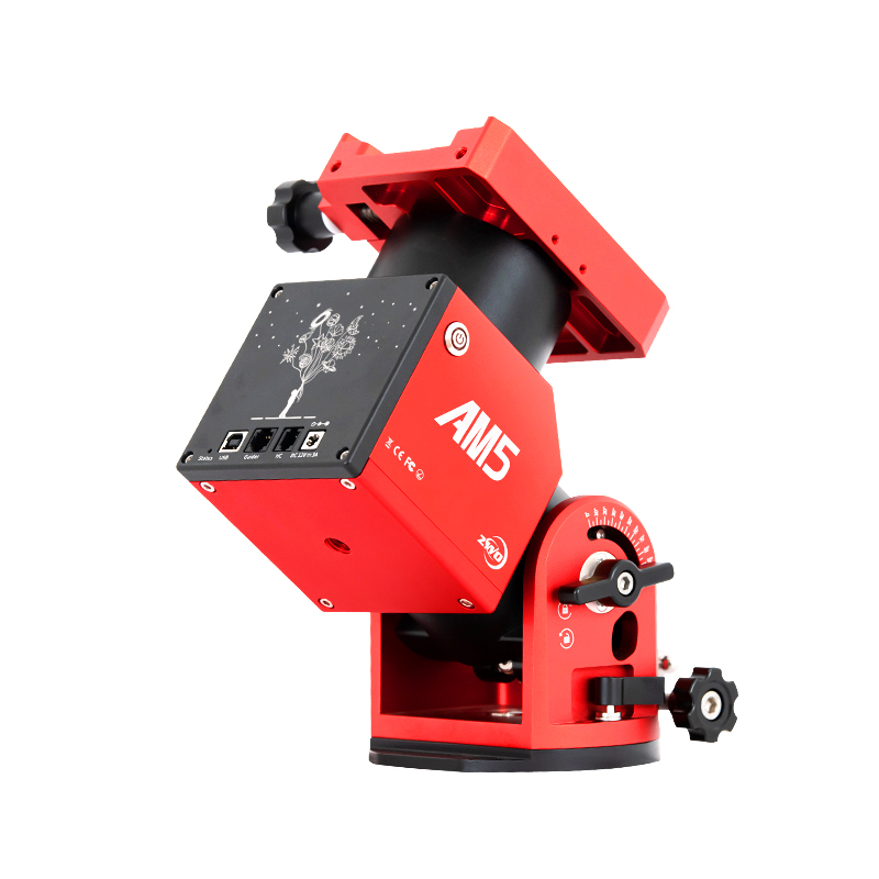 With the Harmonic Equatorial Mount AM5, ZWO offers a transportable mount for astrophotography. The mount weighs less than 5 kg and carries telescopes up to 13 kg without counterweight. With counterweight and the counterweight rod (not included) the mount can even carry telescopes up to 20 kg. Several years of development and various patents have gone into this exciting mount.