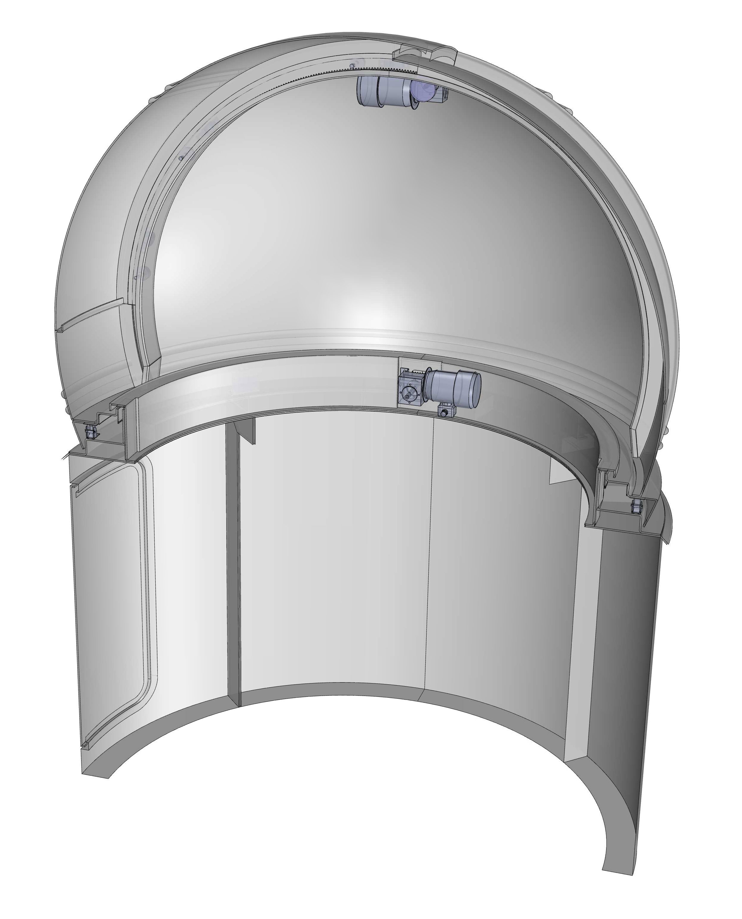 tightness better then in larger domes, design and production in 3D and CNC technology allowed us to minimize the space between the rotating parts of the dome.