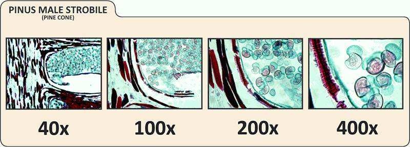 Camera sensor acts as 10x eyepiece lens, yielding 40x, 100x, and 400x powers