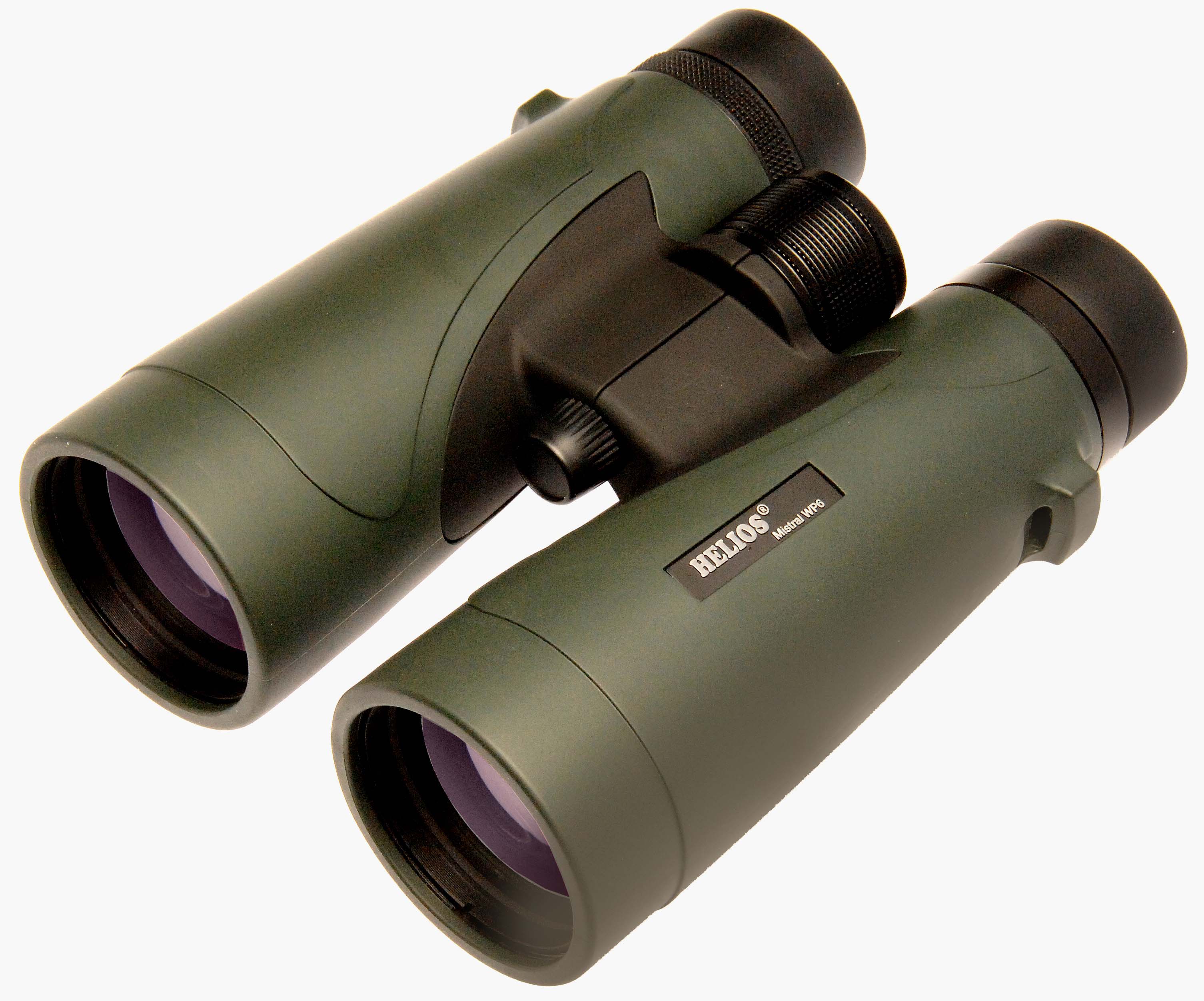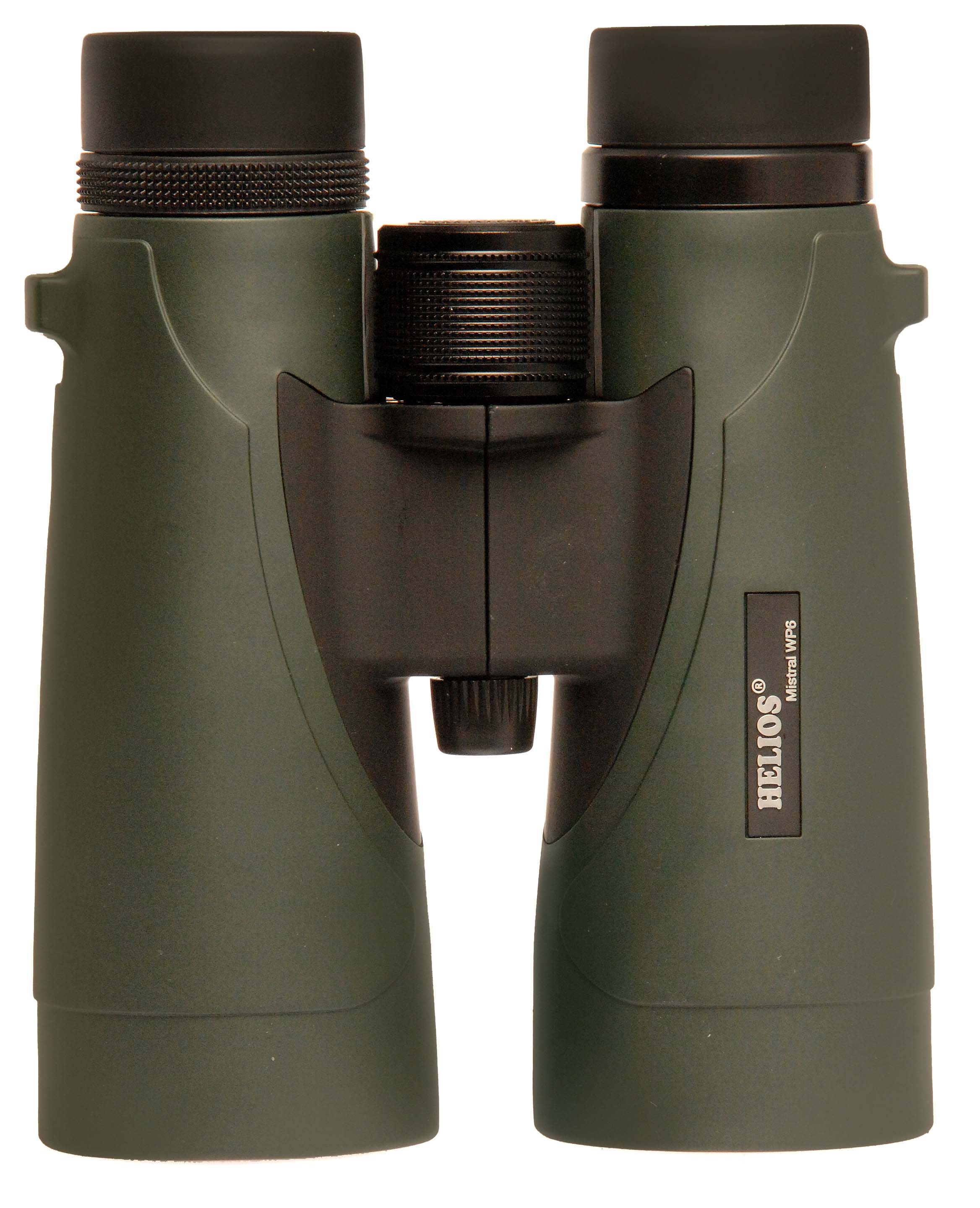 he new, highly specified Helios MISTRAL WP6 roof prism range comprises ten models over 32mm, 42mm and 50mm objective lens apertures. They are extremely competent instruments for both birdwatching & general observing, and represent truly amazing value. They feature a very stylish, ergonomic, modern top hinge design covered in sleek green rubber armouring. The body is constructed from lightweight but robust polycarbonate. All models feature high-index, silver-coated BaK-4 prisms and fully multi-coated optics which provide excellent optical performance. Images delivered are crisp and sharp, with very good resolution, brightness and depth of field, whilst maintaining colours to a natural level. Near focus capability of all models is 2.5m or less. Waterproof and nitrogen filled for clear, fog-free operation. Twist-up, 3?position eyecups with metal sub-structure. Suitable for spectacle wearers. Knurled metal, easy-grip 2-turn focusing knob. Integral tripod bush. Supplied with neck strap, eyepiece rainguard, objective lens caps and soft case.