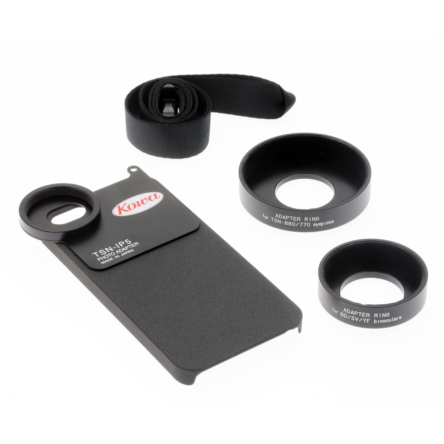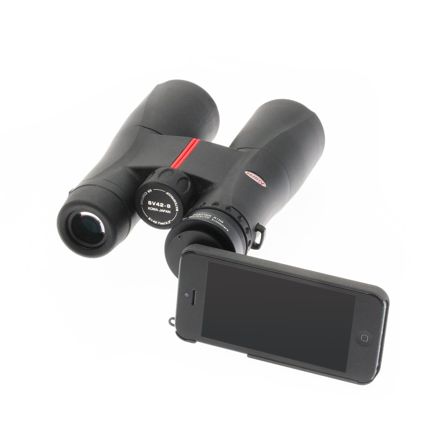 ?It couldn?t be simpler to start taking magnified images or HD video with your iPhone and optical equipment via the Kowa digiscoping adapter. Simply slot your iPhone into the holder and screw on the appropriate adapter ring - that?s all there is to it - then push the adapter over the eyepiece of your spotting scope and you?re ready to digiscope - the whole process takes seconds. For those who prefer a more solid and permanent connection between iPhone and spotting scope - the TSN-IP4S/5 is compatible via an adapter ring with our DA10 collar - which can be screwed in to larger eyepieces and locked into place. The iPhone is a great way to digiscope - the large highly detailed screen is perfect for composing your image. You can also use your headphones as a remote shutter release for hands free operation (iOS5 operating system required). Thanks to the connectivity of the iPhone, you can quickly upload and share your unique and high quality images with friends, family and the rest of the world online!?