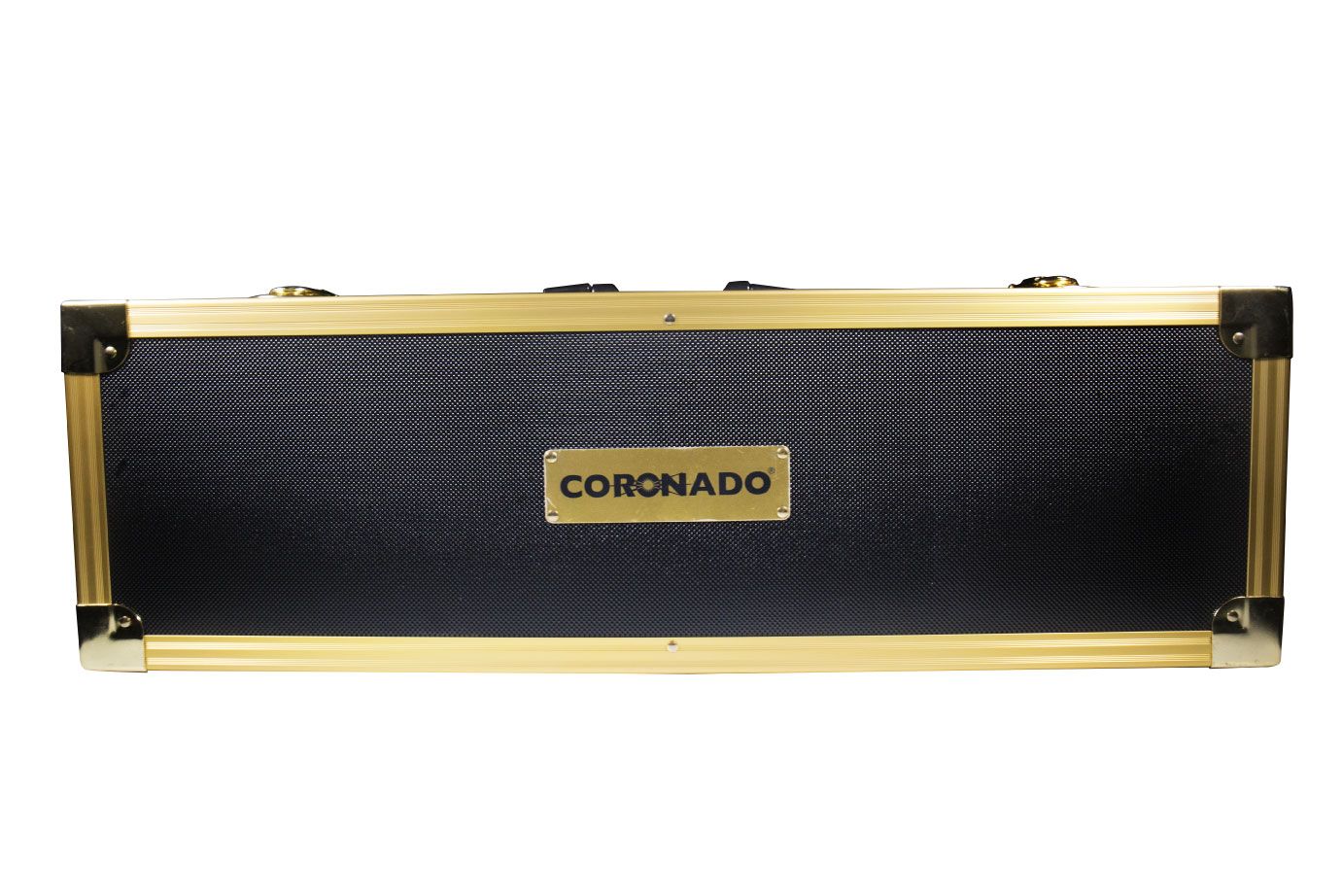 Pridedamas juodos/auksinės spalvos transportavimo lagaminas, jo matmenys 67 cm x 22 cm x 22 cm.